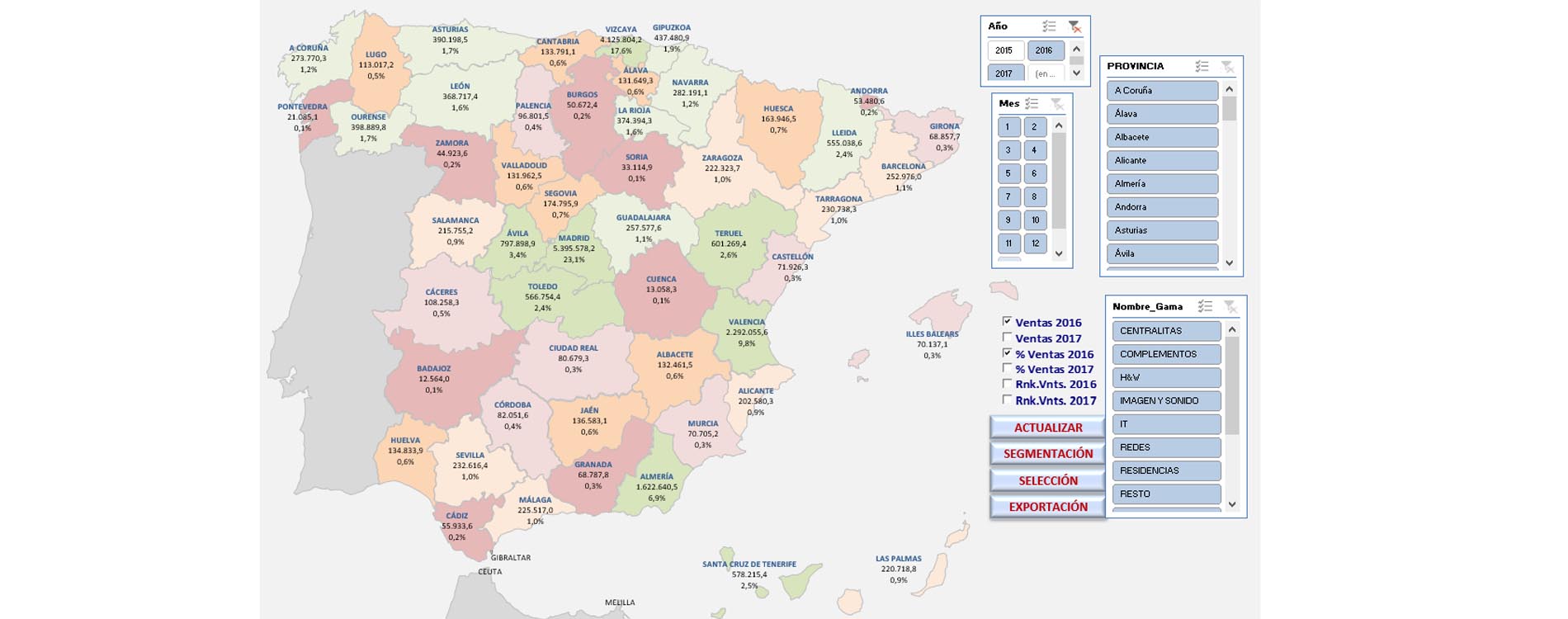 Ventas y márgenes por clientes, familias y países, de compras por artículos y proveedores, etc...